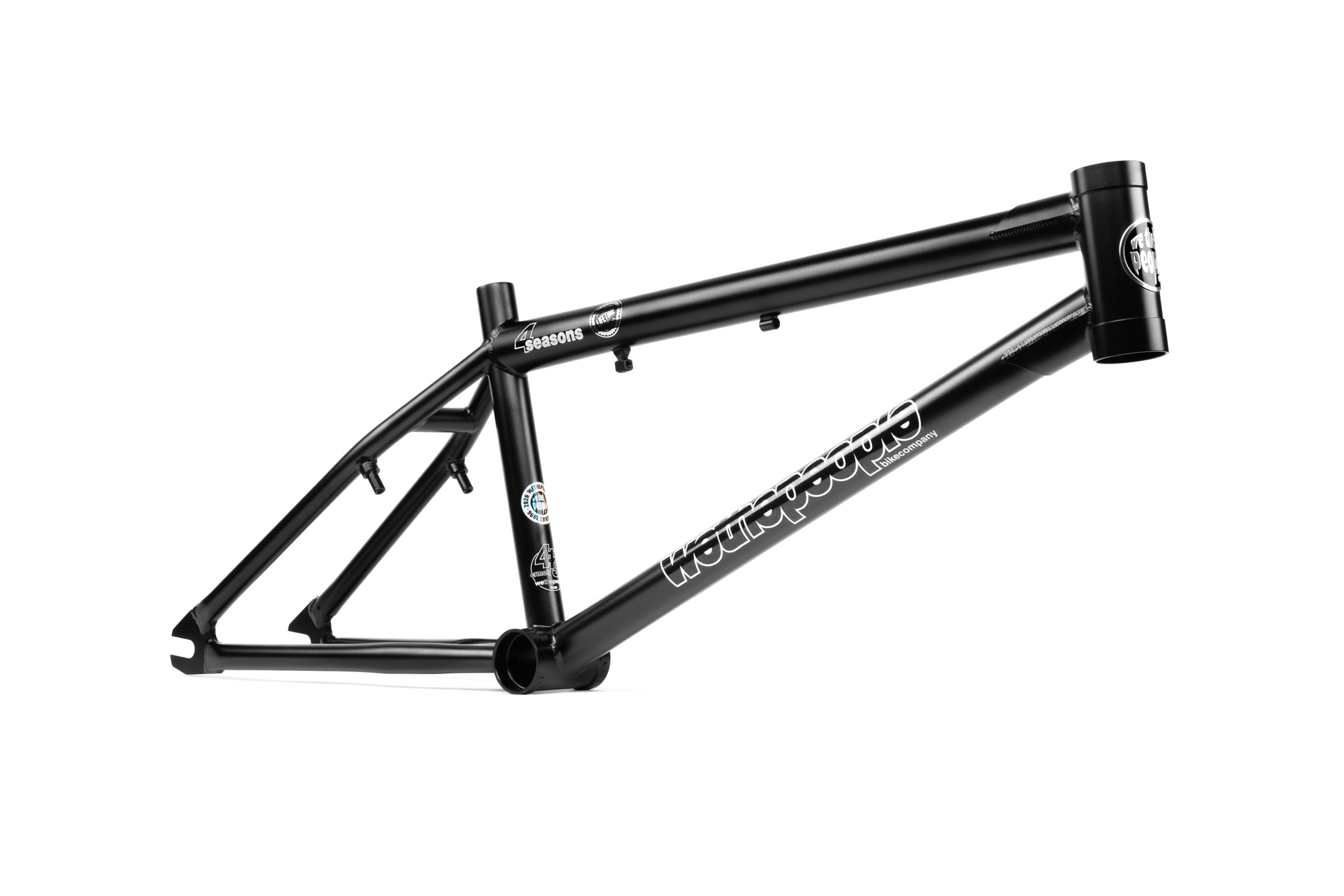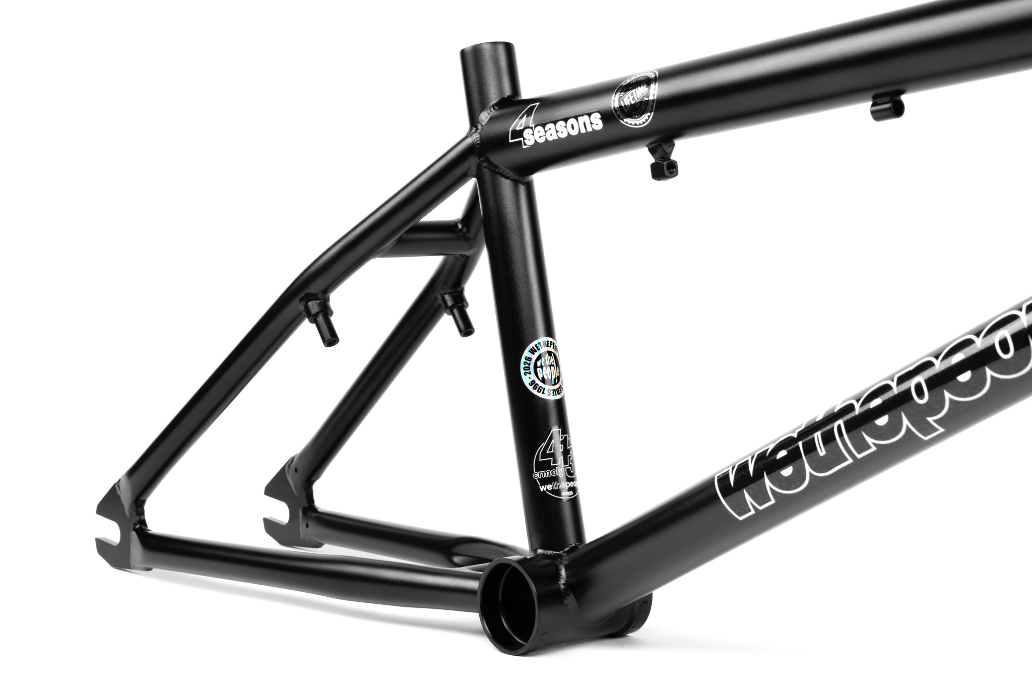 Celebrating one of the most iconic Wethepeople frames of all time, we are proud and excited to offer a limited-edition reissue of the legendary Wethepeople 4 Seasons frame! Originally released in 2001, the 4 Seasons was our very first “modern”, “double-diamond” style frame which made waves in the BMX world when it first dropped and quickly became an absolute staple in the BMX scene for the following two decades. We took extra care and attention to recreate a frame which pays homages to the original V1 4 Seasons in both aesthetics and styling, whilst incorporating new-school technology and easily enjoyable geometry. From the oversize stays, cupped style bearing shells and classic tubing silhouette, we wanted to stay close to the original design whilst creating a frame that every kind of rider could love and enjoy, newcomer or seasoned veteran. The mellower head tube and welded brake mounts keeps the mid-school vibes strong, whilst the overall slimmed down tubing, reduced weight and specially designed integrated head tube and Mid BB shapes allow a hassle free build up and none of the back pain from the past. Built to be collected, displayed, ridden, and loved, this was a project of passion fuelled by almost 30 years of making the very same bikes we ride every day. Fully backed by our Lifetime Guarantee, the 4 Seasons is reborn.