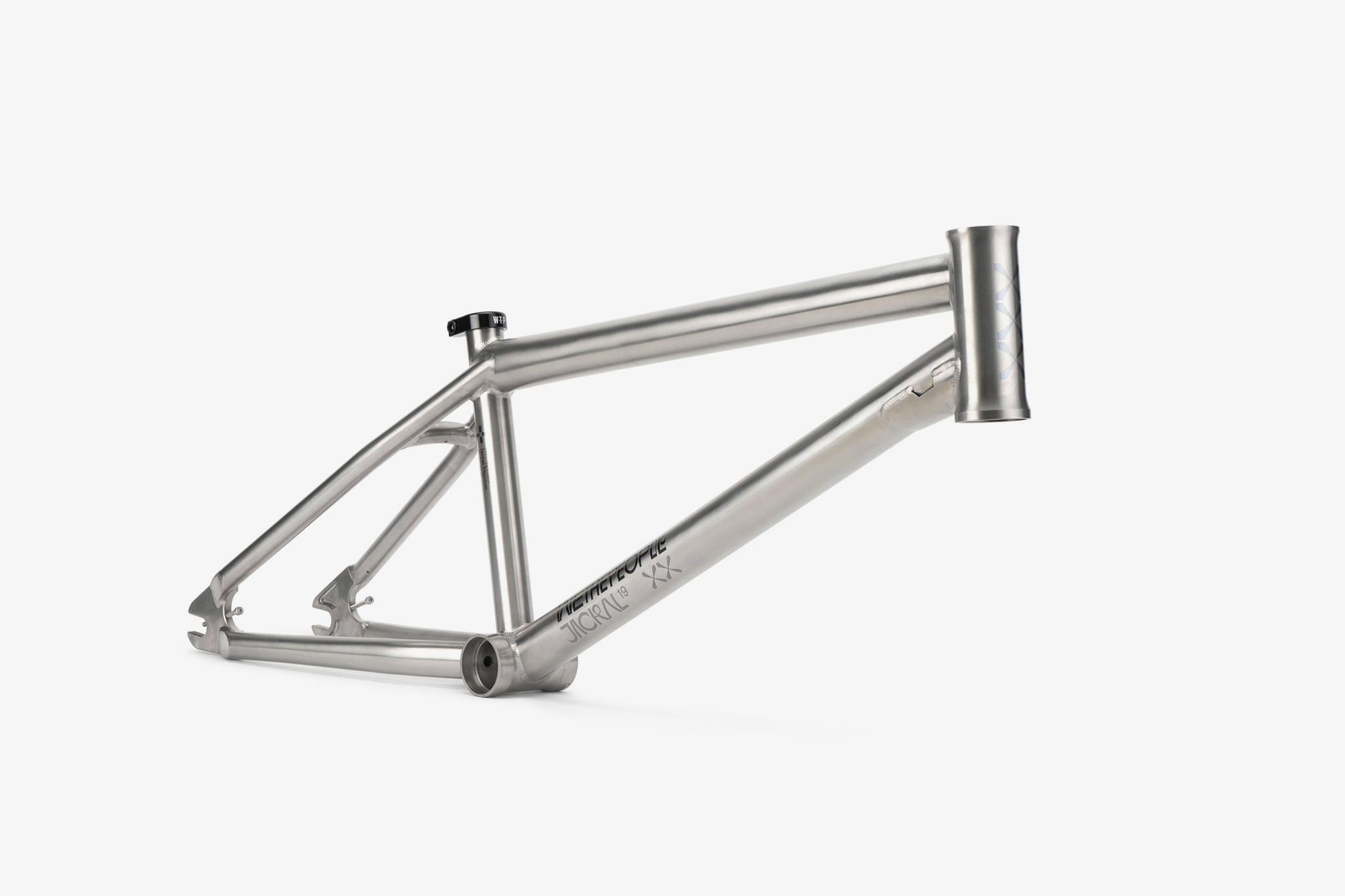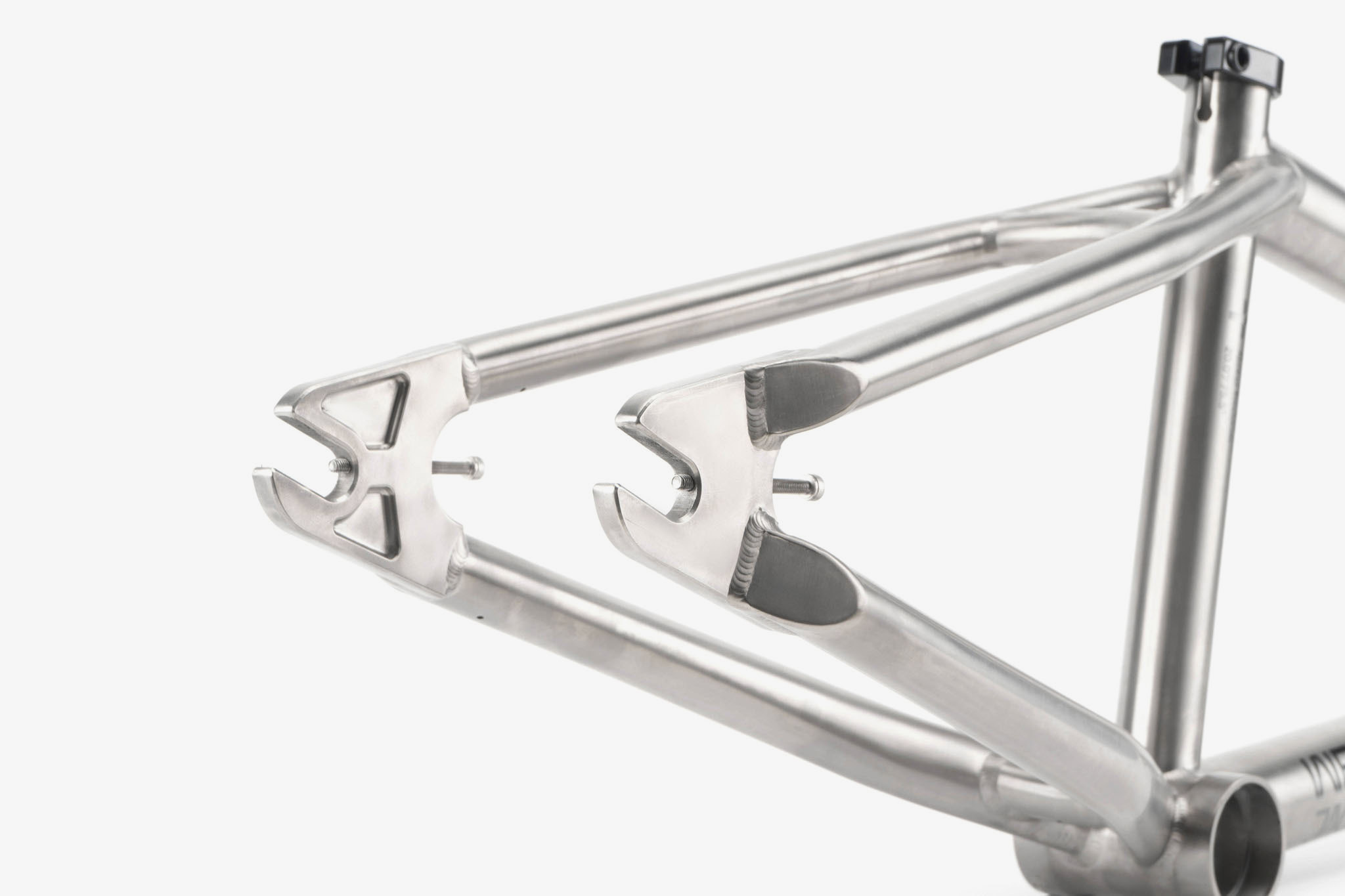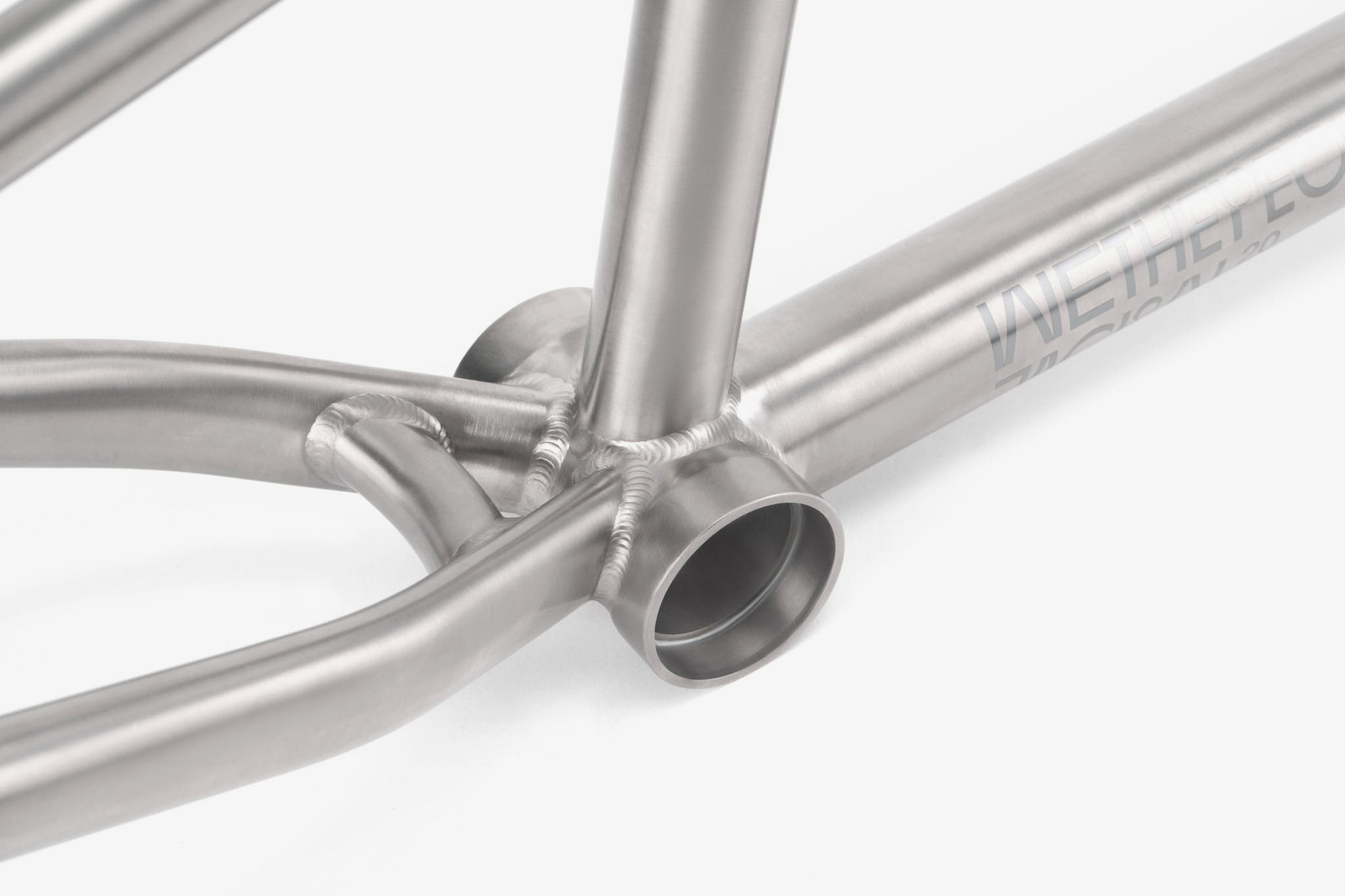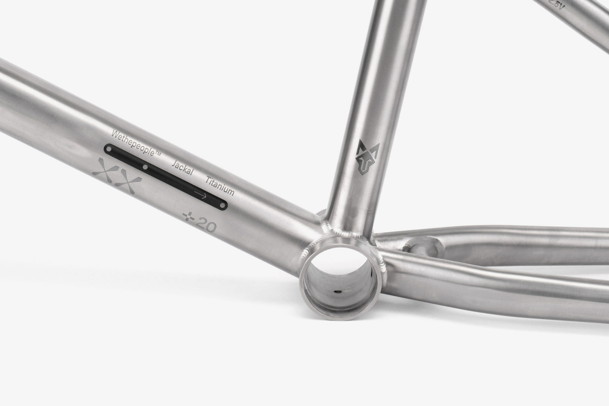 What started as a casual conversation with our flatland team riders about basic frame/fork geometry, later exploded into a two-year quest to create a super lightweight and modern flatland frame and fork fully built from Titanium alloy. Hand crafted by one of the highest quality Titanium fabricators in the industry, the Wethepeople Jackal Frame is a contemporary flatland frame built to shed as much weight as possible without adversely affecting the durability. With Titanium being a vastly different material to Chromoly, we decided to take a more methodical approach and learn exactly how to use the material safely and wisely allowing us to keep all the weight benefits without sacrificing the overall rigidity and feel of the frame. Our first ever Titanium frame (so this one had to be done right) will be built to incredibly high tolerances and quality standards. Whilst there may be marginally lighter titanium flatland frames on the market, the Jackal Frame is in our eyes a step above and beyond the normal application of this special material in BMX and caters to the benefits and special properties the material naturally offers. Up to 30% We decided to go with a more progressive, modern frame geometry borrowed from our Utopia Hybrid frame, with strength and stiffness being a priority. The first run of frames will be available in both a 19” toptube and a 20” toptube, with no brake mounts for the first batch. Up to 35% lighter than an equivalent chromoly frame, whether you’re looking to ride an incredibly light and durable hand made BMX frame or simply own a masterpiece of a bike, the Jackal Frame is something truly special.