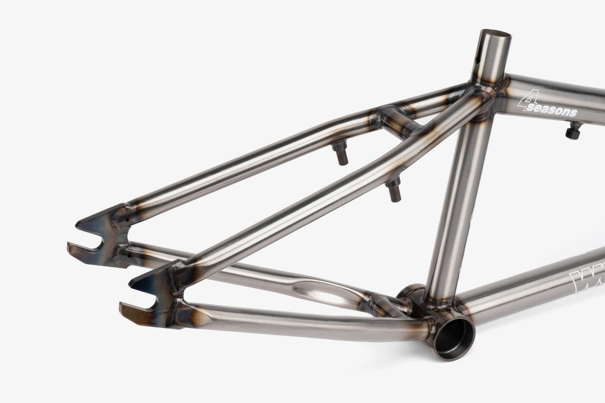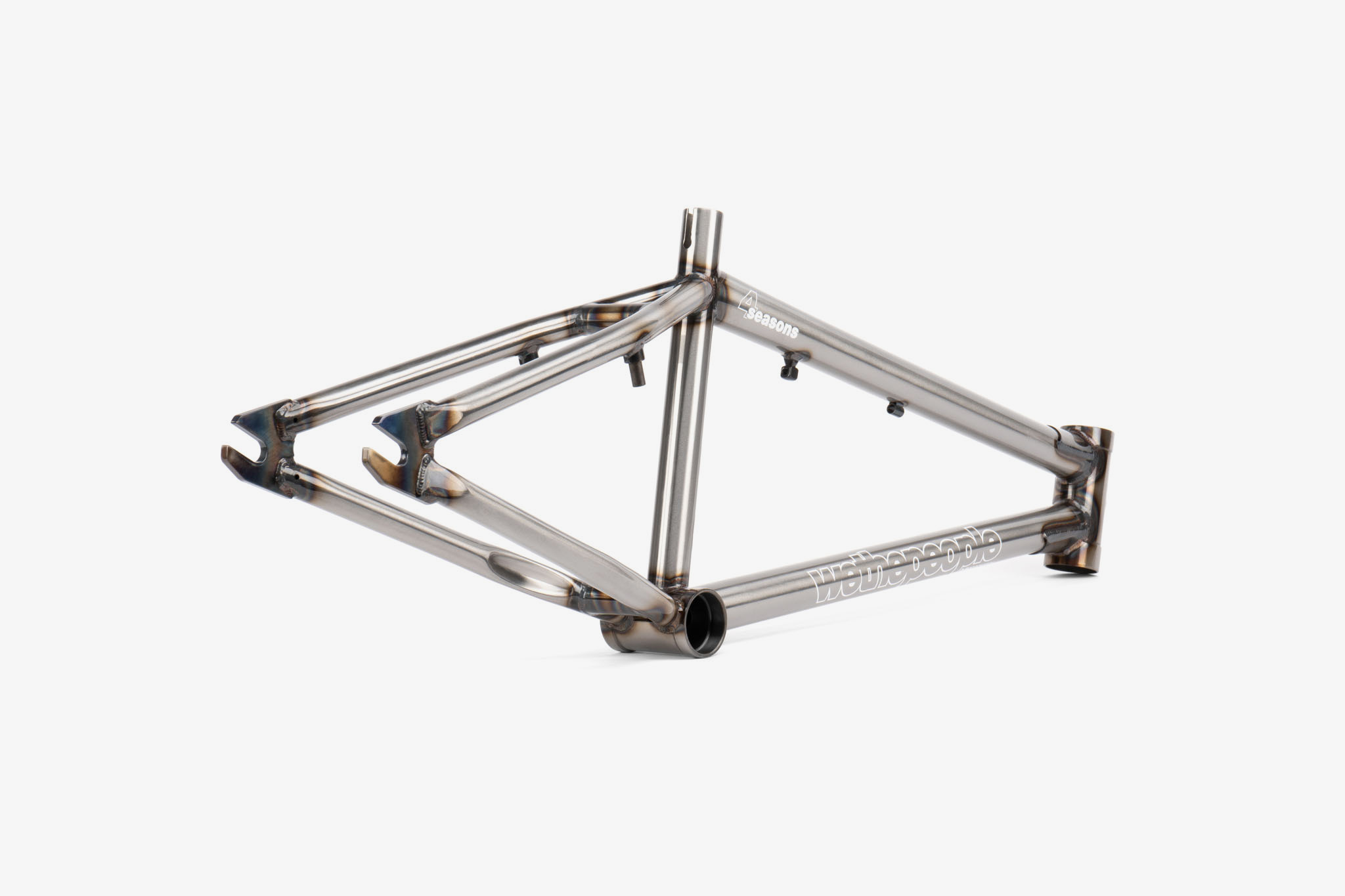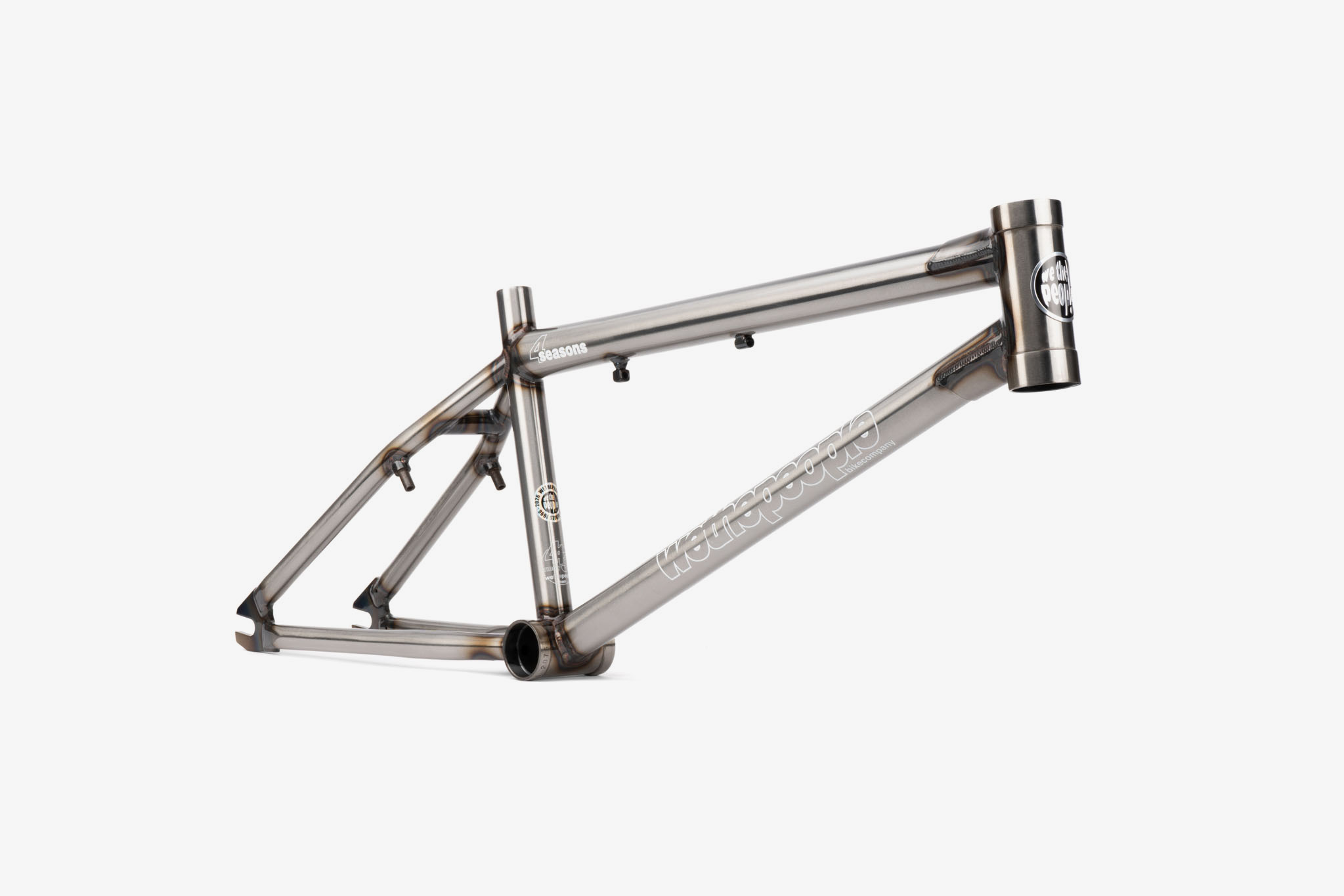 Celebrating one of the most iconic Wethepeople frames of all time, we are proud and excited to offer a limited-edition reissue of the legendary Wethepeople 4 Seasons frame! Originally released in 2001, the 4 Seasons was our very first “modern”, “double-diamond” style frame which made waves in the BMX world when it first dropped and quickly became an absolute staple in the BMX scene for the following two decades. We took extra care and attention to recreate a frame which pays homages to the original V1 4 Seasons in both aesthetics and styling, whilst incorporating new-school technology and easily enjoyable geometry. From the oversize stays, cupped style bearing shells and classic tubing silhouette, we wanted to stay close to the original design whilst creating a frame that every kind of rider could love and enjoy, newcomer or seasoned veteran. The mellower head tube and welded brake mounts keeps the mid-school vibes strong, whilst the overall slimmed down tubing, reduced weight and specially designed integrated head tube and Mid BB shapes allow a hassle free build up and none of the back pain from the past. Built to be collected, displayed, ridden, and loved, this was a project of passion fuelled by almost 30 years of making the very same bikes we ride every day. Fully backed by our Lifetime Guarantee, the 4 Seasons is reborn.