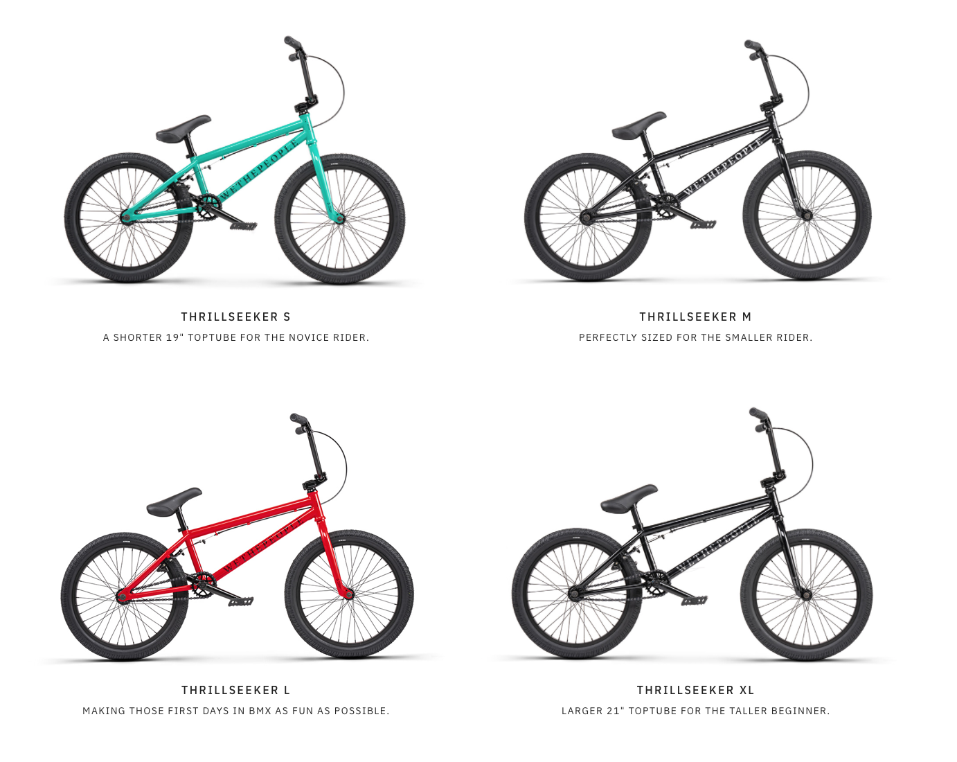 Originally designed back in 2000, the Thrillseeker was a revolutionary concept for that time which really put Wethepeople on the map. Based on the notion of a bike which “fitted” the rider better than what was currently available - the Thrillseeker was one of the first bikes to steer away from the overbuilt aesthetics of the 90’s early 2000’s and instead strive towards a streamlined and more refined bike for transition and ramp riding. That 20 year old concept of a bike with the “perfect fit” transfers seamlessly into the all new revamped Thrillseeker line.