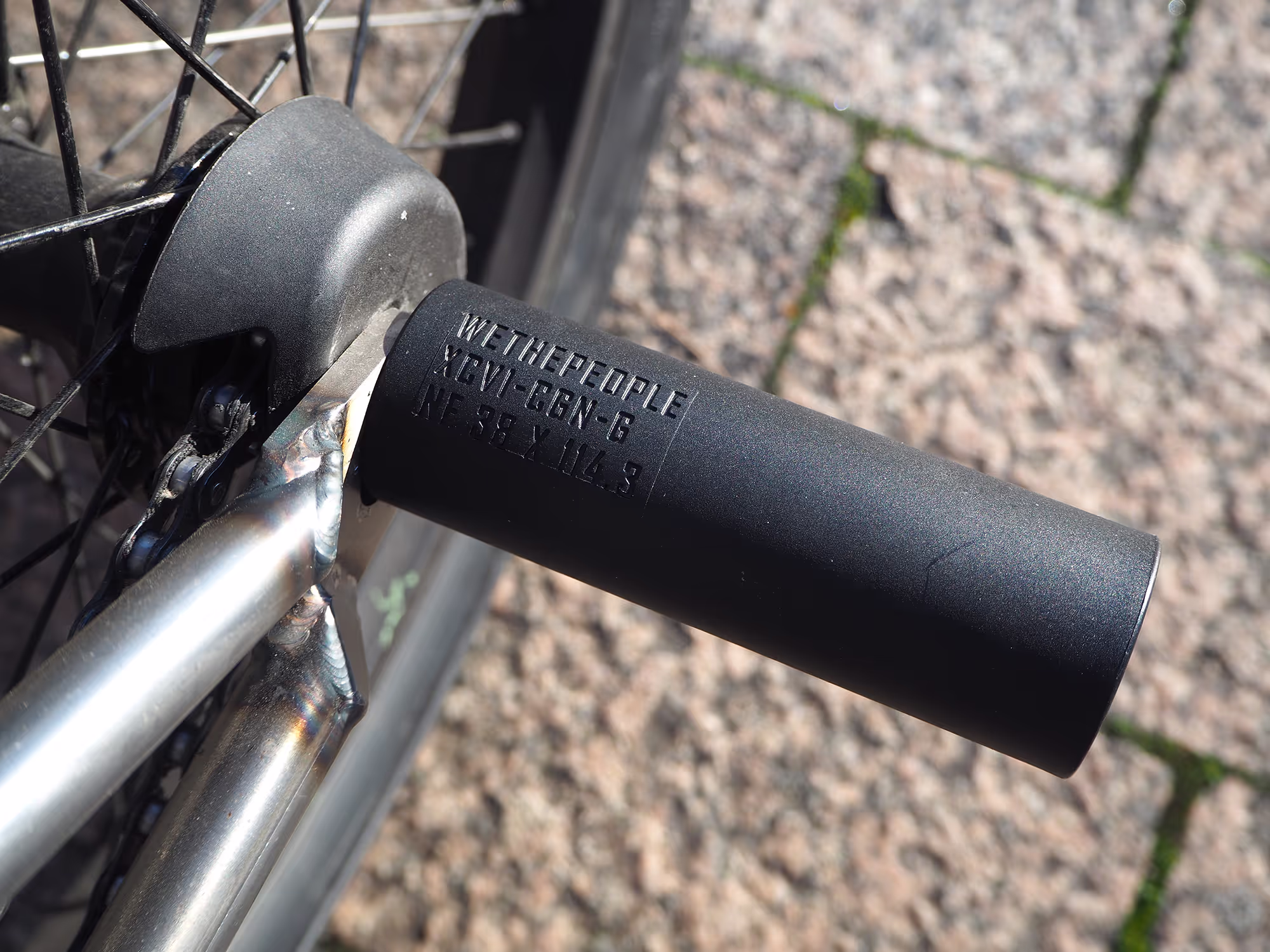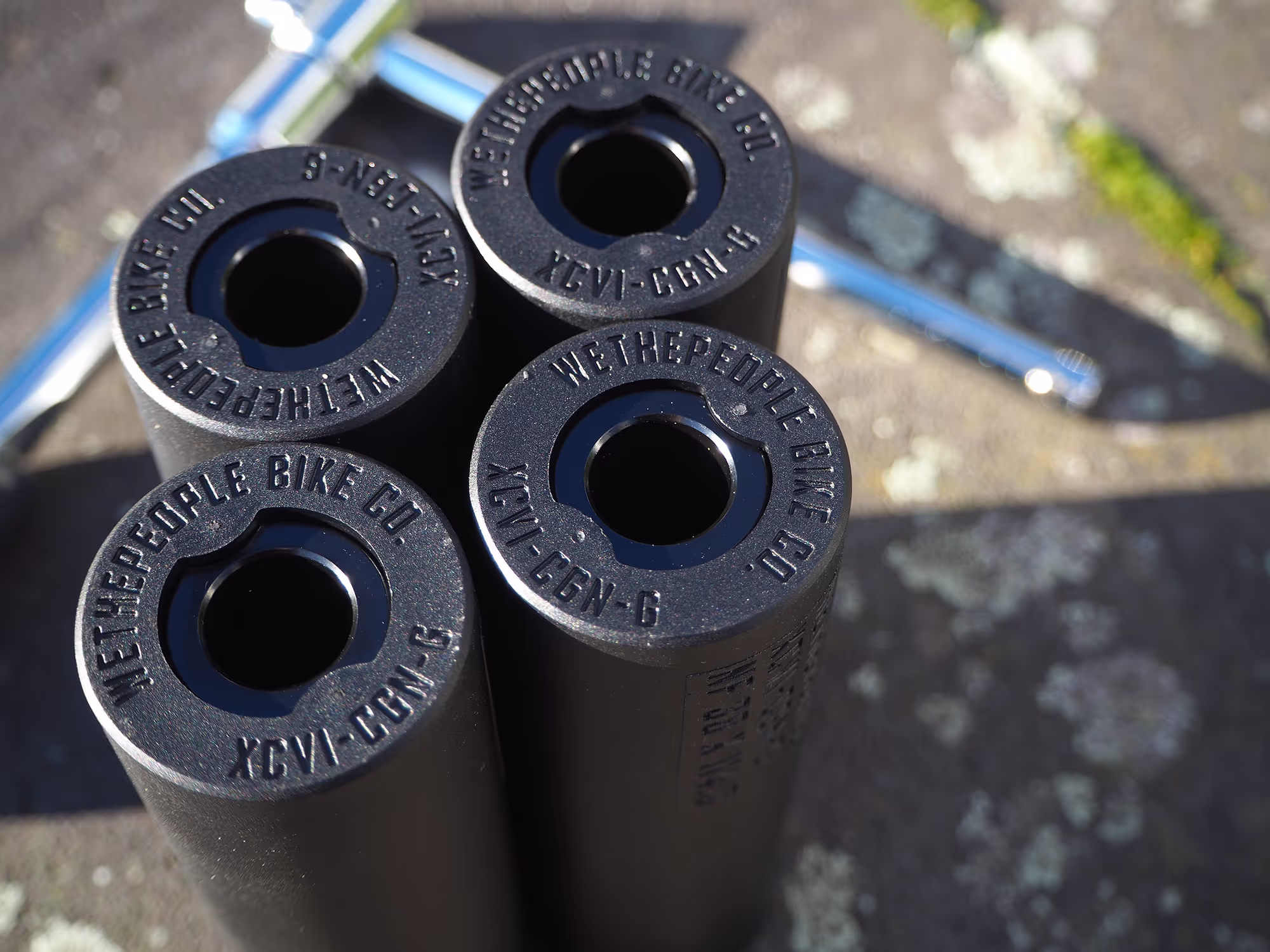 We worked with the Wethepeople team to develop a peg with a unique cold-forged Chromoly core that would outlast any other plastic peg on the market. By using a heat-treated Chromoly core with the temper peg, we were able to create a peg that would not deform, dent or get damaged over time like an alloy peg, allowing you to keep running the temper pegs again and again and again. The cold-forged core also allowed us to increase the thickness of the sleeve without needing to enlarge the diameter of the peg, making the temper pegs very slim. Backed up with our "anti-spin" sleeve locking system and our own proprietary nylon/fibreglass sleeve material which outlasts the competition, the temper pegs are some of the longest-lasting pegs and best feeling in the game.